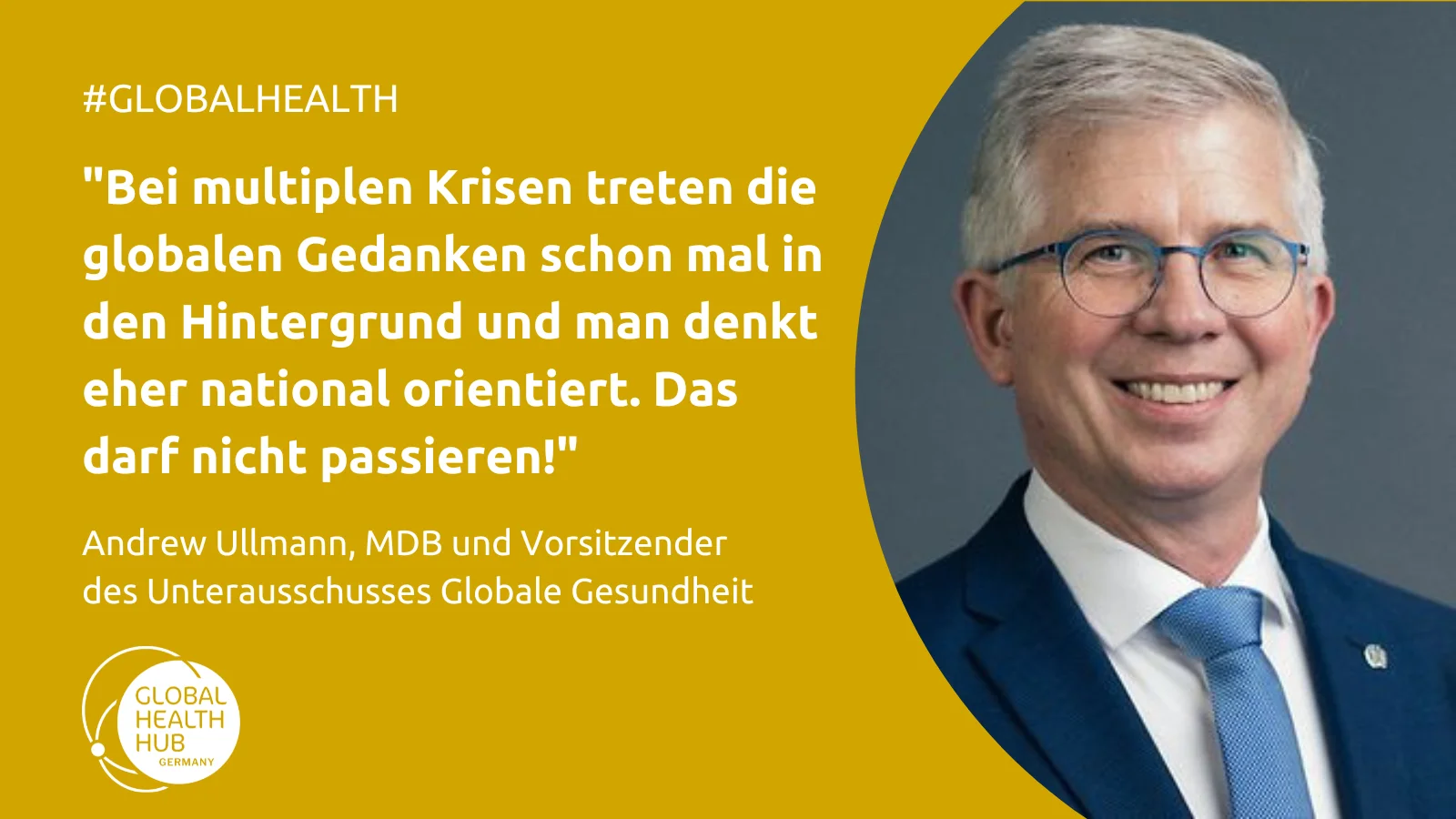 Andrew Ullmann: Ich stelle mir vor, dass sich globale Gesundheit im politischen Alltag wiederfindet. Anfangs waren wir ein paar, ich würde fast sagen ‘Nerds‘, die über globale Gesundheit gesprochen haben, und auch in den Parteien gab es zum Teil Kopfkratzen, was ist das denn eigentlich? Dieses Bewusstsein hat sich in den letzten vier Jahren dramatisch geändert, dass globale Gesundheit eine wichtige Rolle spielt.