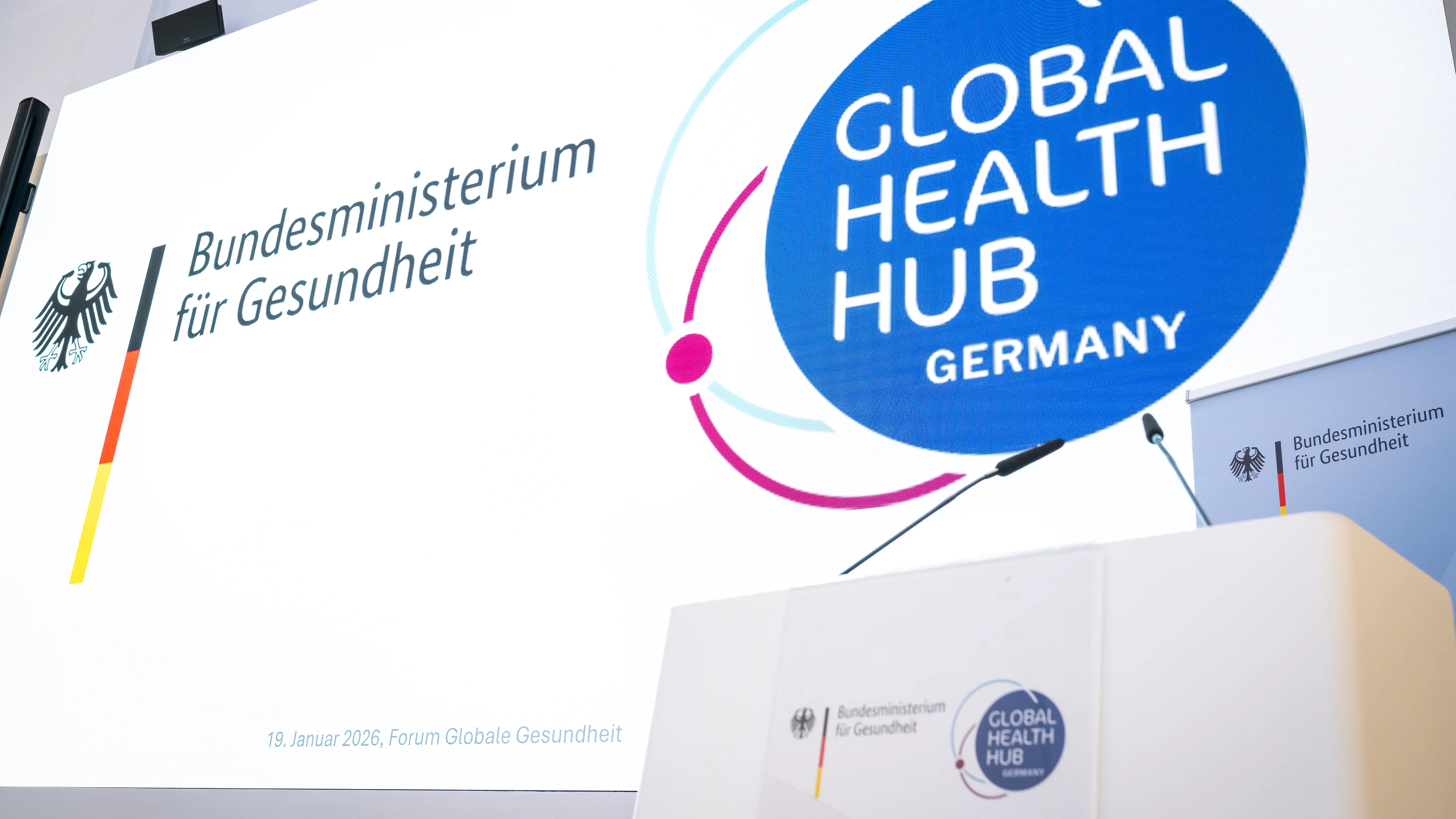 Welche Verantwortung tragen Deutschland und Europa für eine wirksame globale Gesundheitspolitik in Zeiten geopolitischer Umbrüche? Diese Frage stand im Mittelpunkt des Forum Globale Gesundheit, das am 19. Januar 2026 erstmals in Berlin stattfand. Vertreter:innen aus Politik, Wissenschaft, Wirtschaft, Zivilgesellschaft, Jugend, Stiftungen und internationalen Organisationen kamen zusammen, um gemeinsam Bilanz zu ziehen und den Blick nach vorne zu richten. Das Forum, ausgerichtet vom Bundesministerium für Gesundheit (BMG) und dem Global Health Hub Germany (GHHG), setzte den bewährten Dialog mit nicht-staatlichen Akteuren fort und markierte gleichzeitig einen wichtigen Meilenstein: den Abschluss des Review-Prozesses zur Strategie der Bundesregierung für globale Gesundheit.