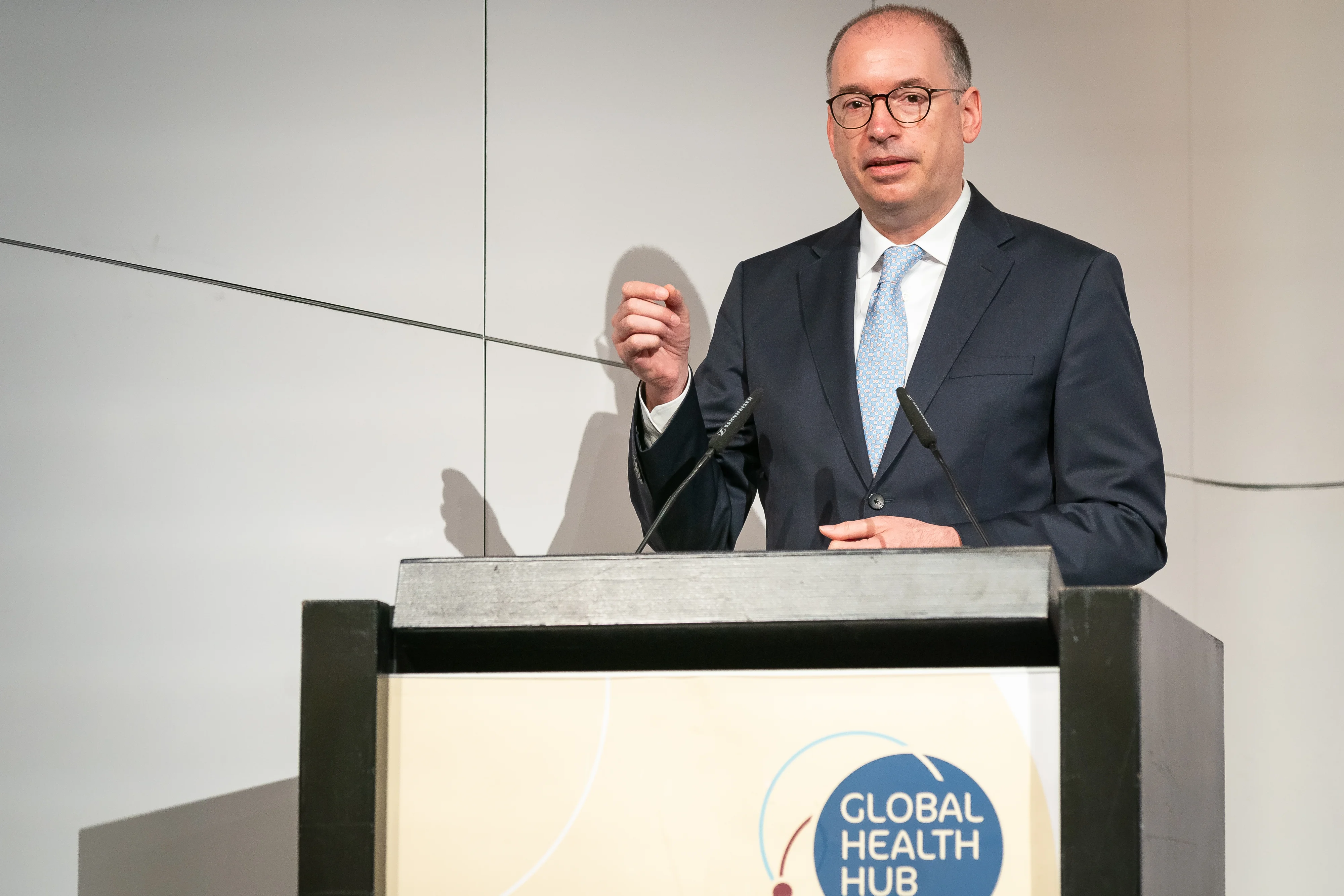 Verbindungen knüpfen, Netzwerke mit Leben füllen und gemeinsam Ideen in die Tat umsetzen – dies sind die Wege zu nachhaltigen Lösungen für das Wohlergehen der Menschen weltweit. Diese Vision teilen auch die Mitglieder des Global Health Hub Germany. Bundesgesundheitsminister Prof. Dr. Karl Lauterbach betonte in seiner Eröffnungsrede: „Der Global Health Talk bietet den Raum, sich zu Lösungsideen für die drängenden Fragen der Globalen Gesundheit auszutauschen. Der Global Health Hub sollte wachsen, um weitere Akteure aus allen Disziplinen zusammenzubringen. Hierfür wird das Bundesgesundheitsministerium den Hub in den kommenden Jahren weiterhin unterstützen. “ Die Mitglieder des Hub-Lenkungskreises Dr. Christoph Benn, Joep Lange Institute, Sophie Gepp, KLUG – Deutsche Allianz Klimawandel und Gesundheit e.V., und Tobias Kahler, Bill & Melinda Gates Foundation, begrüßten diese Zukunftsperspektive und stellten die neue Strategie des Hubs vor. Diese fußt auf drei Säulen: den Ausbau des Netzwerkes, die Verstärkung der Wirkungen und die Zusammenarbeit mit politischen Entscheidungsträger*innen. Die Anknüpfung an die Ziele der deutschen G7-Präsidentschaft und die Empfehlungen für nachhaltige Investments in Globale Gesundheit sind dabei besonders wichtig. Hierfür brauche es starke intersektorale Partnerschaften und gegenseitiges Lernen. Niels Annen, Parlamentarischer Staatssekretär im Bundesministerium für wirtschaftliche Zusammenarbeit und Entwicklung (BMZ), bekräftigte dies in seinem Redebeitrag: „Wir brauchen eine eng verzahnte, präventiv ausgerichtete Zusammenarbeit über Disziplingrenzen hinweg.“