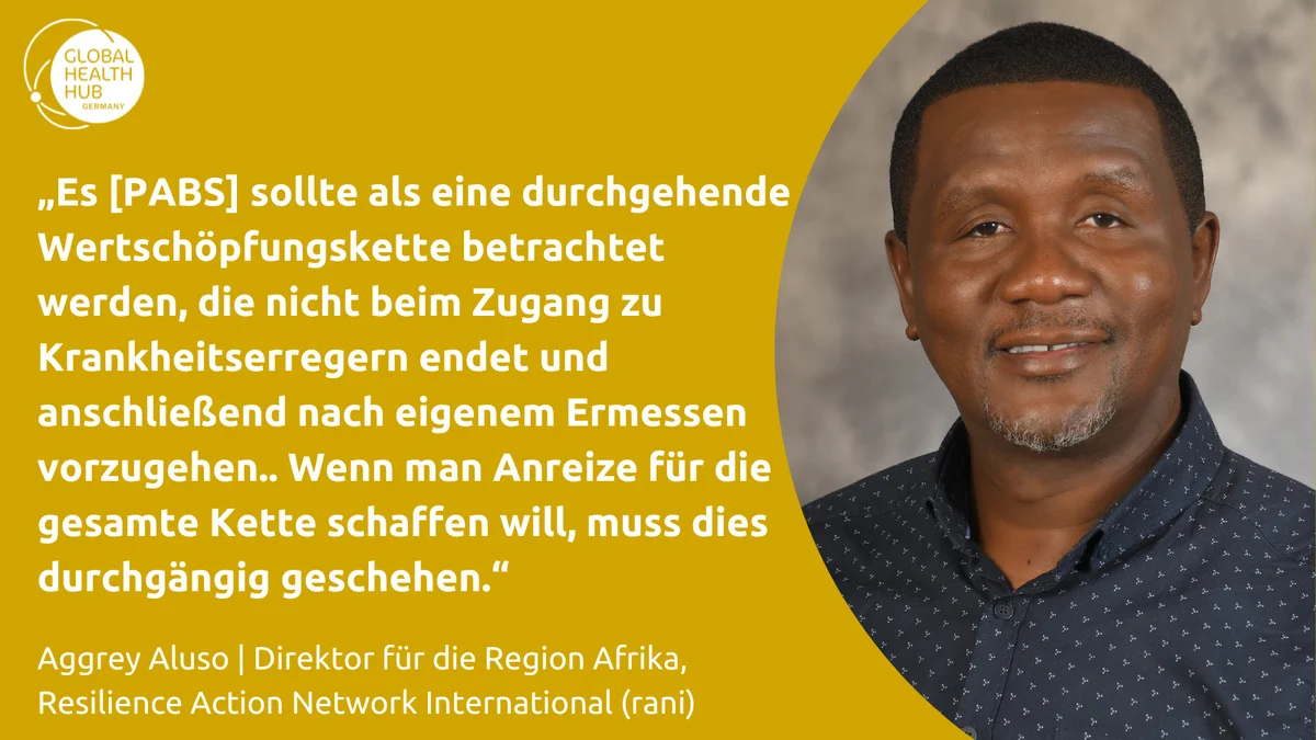 Für diese zweiteilige Artikelserie sprachen wir mit Aggrey Aluso, Direktor für die Region Afrika beim Resilience Action Network International (rani) und Geschäftsführer des Resilience Action Network Africa (RANA), sowie mit Thorsten Behrendt, stellvertretender Referatsleiter des Referats für int. Gesundheitssicherheit im Bundesministerium für Gesundheit (BMG). Ihre Überlegungen bieten wichtige Einblicke und Perspektiven zum Stand der Verhandlungen, zu den Gründen für die weiterhin schwierige Konsensfindung und zu den letztendlichen Herausforderungen für den Multilateralismus.
