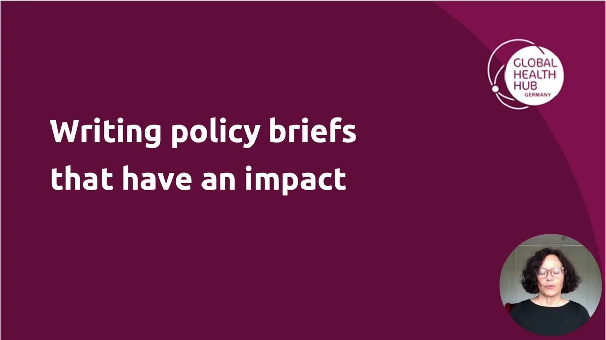 Aus diesem Anlass teilt der Global Health Hub Germany sein Video zum Schreiben effektiver Policy Briefs. In weniger als 40 Minuten vermittelt die Expertin und Journalistin Ute Lange strategische Tipps, um einflussreiche Policy Briefings zu verfassen.