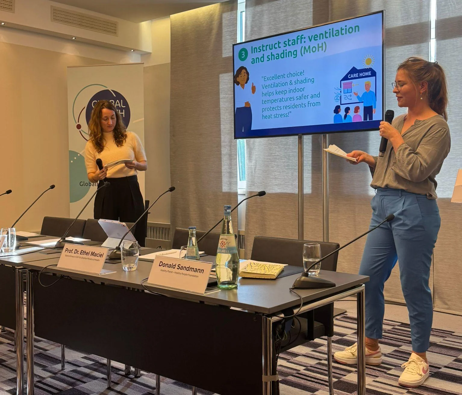 Anstelle einer klassischen Podiumsdiskussion begann die Sitzung mit einer interaktiven Simulationsübung, die die Teilnehmenden inmitten einer Hitzewelle platzierte. In der Rolle von einer Bürgermeisterin mussten sie dringende Entscheidungen treffen, während die Temperatur stieg: Wie sollen begrenzte Mittel verteilt, gefährdete Gruppen geschützt und Pflegeheime entlastet werden?