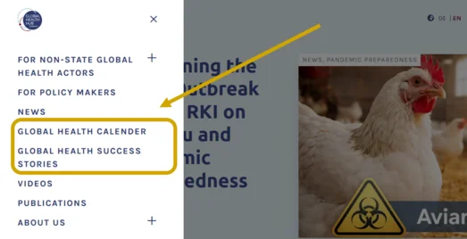 Diese Website hat ein Update bekommen! Neue Funktionen erleichtern das Finden und Entdecken von Inhalten, machen relevante Termine sichtbar und rücken Erfolge im Bereich der globalen Gesundheit stärker in den Fokus.