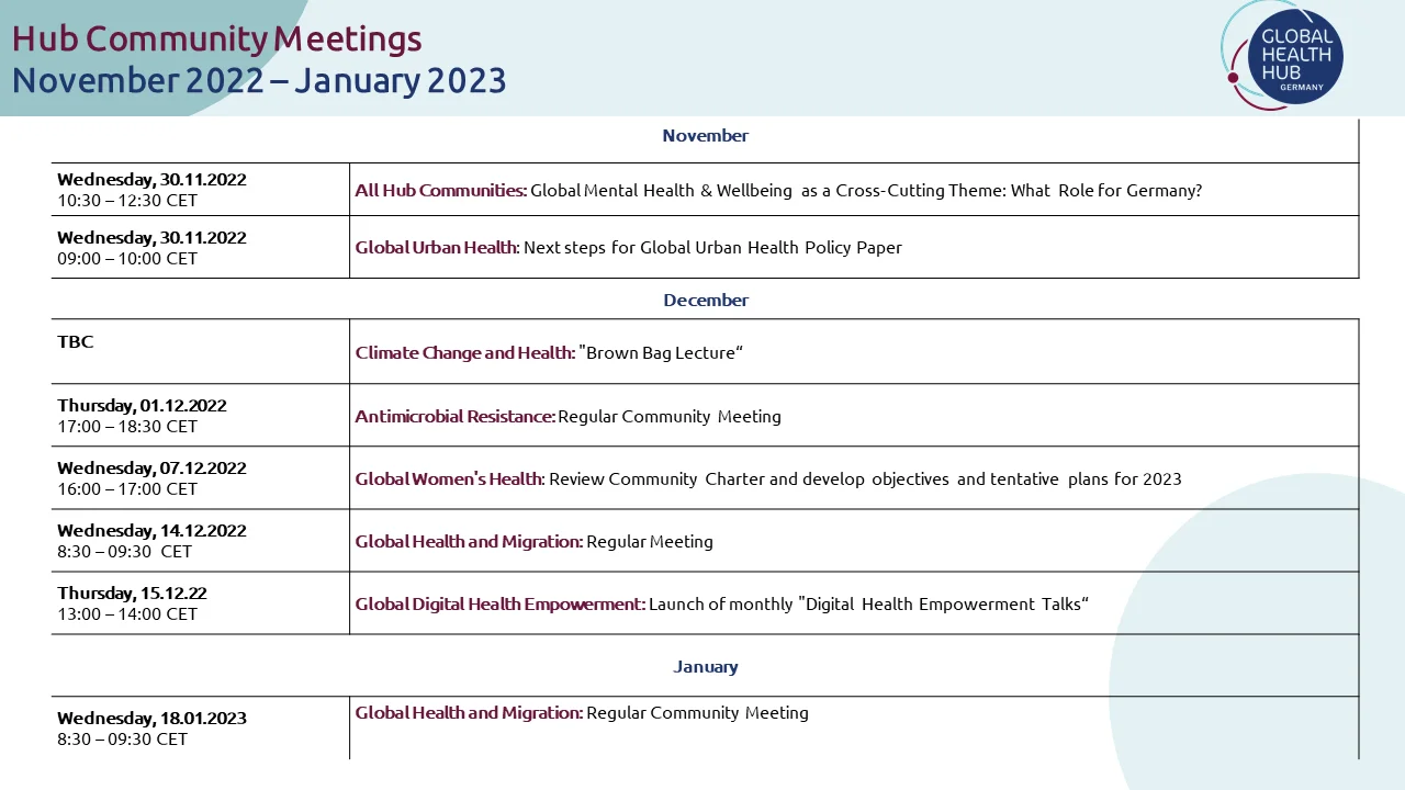 Hub Community Meetings November 2022 – January 2023