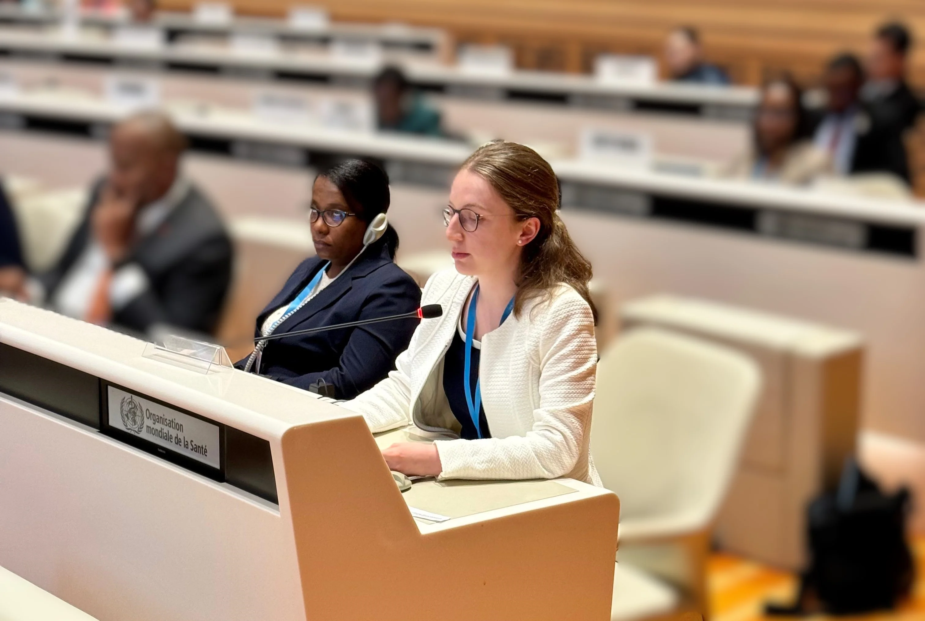 Das Highlight meiner Amtszeit war sicherlich die Teilnahme an der WHA: Ich konnte für fünf Tage vor Ort in Genf dabei sein und hatte so ausreichend Zeit, mich in die Abläufe und Prozesse einzufinden. Insbesondere das Jugendstatement zu halten und zu erleben, dass auch viele Jugenddelegierte aus anderen Ländern hierzu sprachen, war eine einzigartige Möglichkeit. Darüber hinaus unterstützte ich das Team vor Ort z.B. durch Protokollierung von Sitzungen oder dem Auszählen bei Abstimmungen. Zudem durfte ich bei den Koordinierungstreffen der EU und der europäischen Ländergruppe dabei sein und nahm an einem Roundtable der Initiative on Climate Action and Nutrition (I-CAN) teil, wo ich Meinungen aus den Jugendkonsultationen einbringen konnte. Eine wertvolle Erfahrung war auch die Vernetzung mit anderen Jugenddelegierten und Mitgliedern des WHO Youth Council, sowohl im Vorfeld als auch während der Veranstaltung. Trotz all dieser positiven Erlebnisse war ich etwas enttäuscht, dass in den Sitzungen der WHA der fachliche Austausch oft im Hintergrund stand und stattdessen geopolitische Themen und Interessen im Vordergrund standen.
