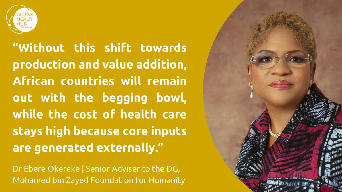 This leads to a deeper challenge: Africa’s structural position as a consumer rather than a producer. “Across the board, the African ecosystem is predominantly a consumerist one, even for products whose raw materials come from our own soil.” Local value addition, she argues, starts with investing in research and development infrastructure. She describes speaking with researchers and scientists who generate promising ideas, only to “practically give away the IP because there is no funding to support them to grow that.” Many medicines and medical devices are also no longer under strict intellectual property controls and could be produced locally, yet systems remain locked into import dependence.