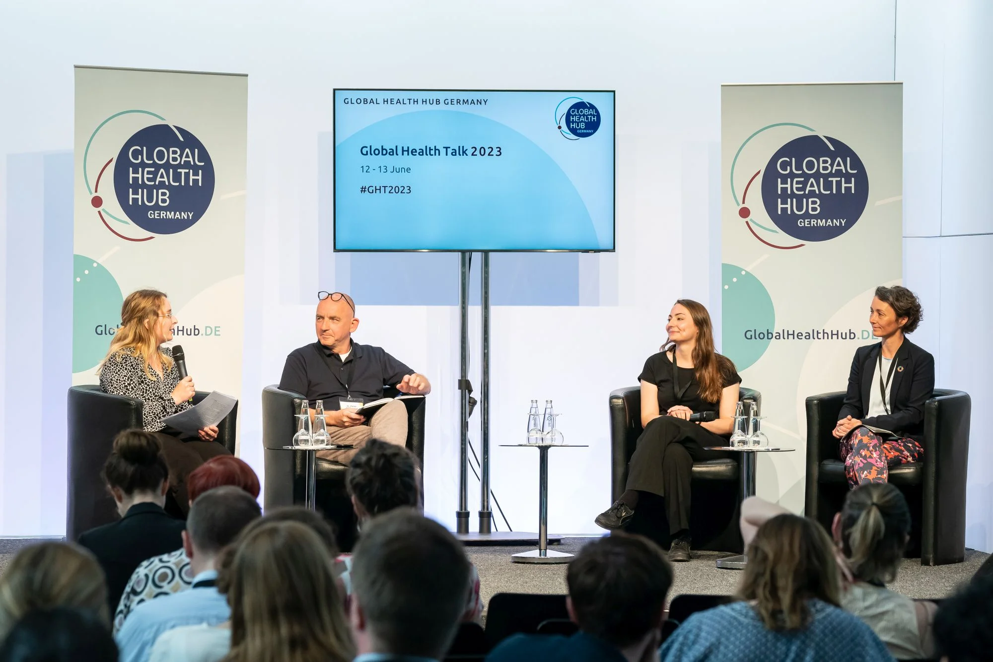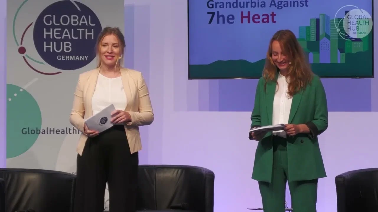 Every year, the connection between climate and health hits home more and more in our own lives. As summer approaches, the mercury rises and heat waves are announced. What can we do to prepare for heat in cities, which is where most people now live? Katrin Lea Heil, Advisor at Deutsche Gesellschaft für Internationale Zusammenarbeit (GIZ), and Sarah Splettstößer, Head of Political Dialogue of the Global Health Hub Germany, invited participants at the event and online to take part in a simulation used by G7 experts, giving them a glimpse into the reality of a decision-maker faced with this question. Conference attendees took on the role of the mayor of the fictional city of Grandurbia, and had to collectively prepare for yet another heatwave. They had just a few seconds to select the right way to help people cope with heat, from developing heat preparedness manuals and calling on the advice of public health institutes, to awareness-raising campaigns and coping mechanisms for living in the city. The audience chose mostly the correct responses, and – at least in this fictional world where political will and financial resources were unlimited – the city was well prepared when the heat arrived, allowing citizens to stay cool.