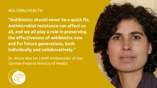 In an exclusive interview, the Global Health Hub Germany had the opportunity to speak with Dr. Muna Abu Sin, the newly appointed AMR Ambassador of the German Federal Ministry of Health.